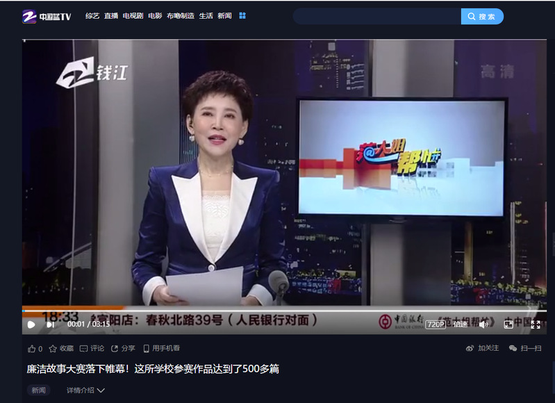 浙江卫视·中国蓝TV:廉洁故事大赛落下帷幕!这所学校参赛作品达到了500多篇